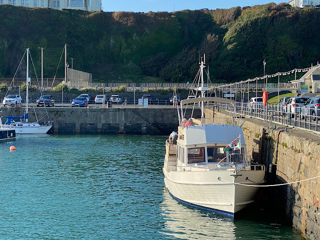 Left Bangor just after 14.30 to go to Portpatrick for a night - just to make the most of good weather and a good forecast. As it happened, there was 12kn SSE wind at the top end of the forecast, and a NE swell giving a lumpier sea than we anticipated. Not in the slightest a problem, and with the temperature up in the 20s and the sun shining, it was a lovely trip - just 2.5 hours. No cetaceans, but there were a lot of birds - Guillemots, Razorbills, Gannets, Kittiwakes, Manx Shearwaters, Fulmars.